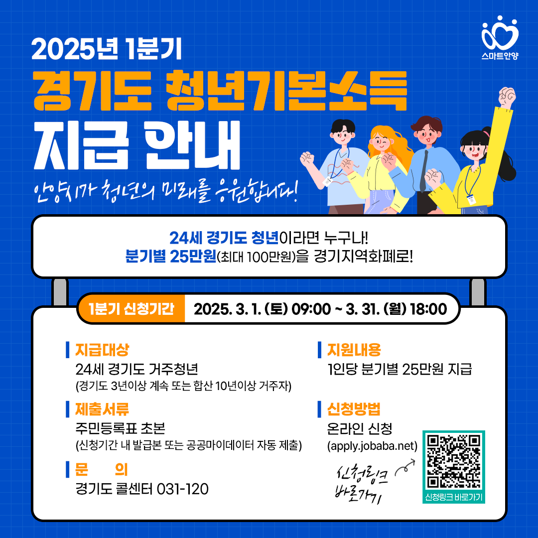 청년들의 경제적 부담을 덜고, 보다 나은 삶을 설계할 수 있도록 경기도에서는 2025년 1분기 청년기본소득을 지급합니다.